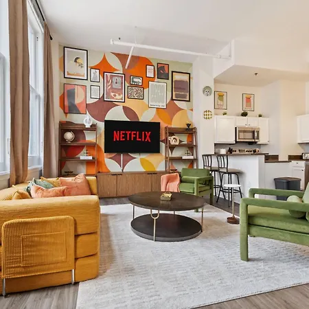 ( ex. New City Views - Walk To Stadium - Convention Center - Arcades - Sleeps 8 - Gym )