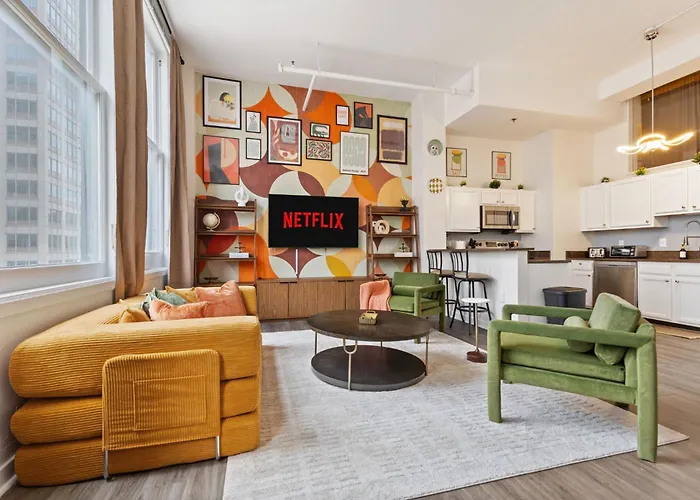 O apartamento Indy City Views - Walk To Stadium - Convention Center - Arcades - Sleeps 8 - Gym Indianápolis de 102 m² está situado no bairro Centro de Indianápolis, e oferece acesso rápido ao Monumento aos Soldados e Marinheiros, que fica a apenas 5 minutos a pé de distância. O Wi-Fi é fornecido para atividades empresariais e de lazer.